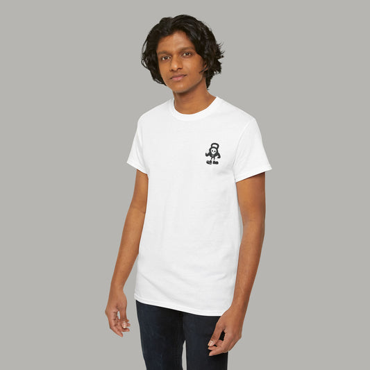 Tough Sauce Kettlebell Skull Dude White Heavy Cotton Tee